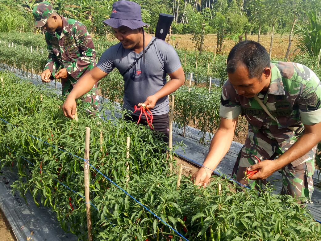 Danramil 18/Tripa Kapten inf Dwi Santosa pada awak Media Suaka Indonesia mengatakan kegiatan pendampingan panen tanaman cabe tersebut sebagai wujud nyata guna mendukung program swasembada pangan tanaman holtikultura.