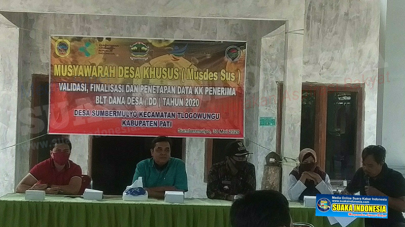 Pati,suakaindonesia.com - Guna memastikan atau validasi dan Penetapan Data Penerima Bantuan Langsung Tunai Dana Desa (BLT DD) Yang terdampak Covid 19, Pemerintah Desa Sumbermulyo Laksanakan Musdes Sus (Musyawarah Desa Khusus) Di Aula Balai Desa Sumbermulyo pada Sabtu pagi (30/5/2020) .